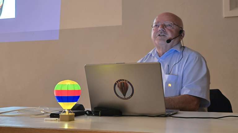 Er schneidet Stoffbahnen und näht auf einer alten Nähmaschine mit Fußantrieb die Bahnen zusammen, dafür braucht er Wochen. „Ich hab nur tagsüber genäht, wenn unser Sohn im Kindergarten war und es ausreichend Umgebungsgeräusche gab“, sagt er. Parallel bauen die Männer einen Brenner aus einem Wasserrohr mit Absperrhähnen zum Regulieren, schmieden eine 1,40 mal 1,40 große Plattform für die Gondel, deren „Geländer“ aber nur aus Wäscheleine besteht. Das Gebläse bauen sie aus dem Motor von Wetzels Motorrad. „Das hat richtig Wind gemacht“, sagt er stolz –„im Gegensatz zu den heutigen Gebläsen professioneller Ballons“.